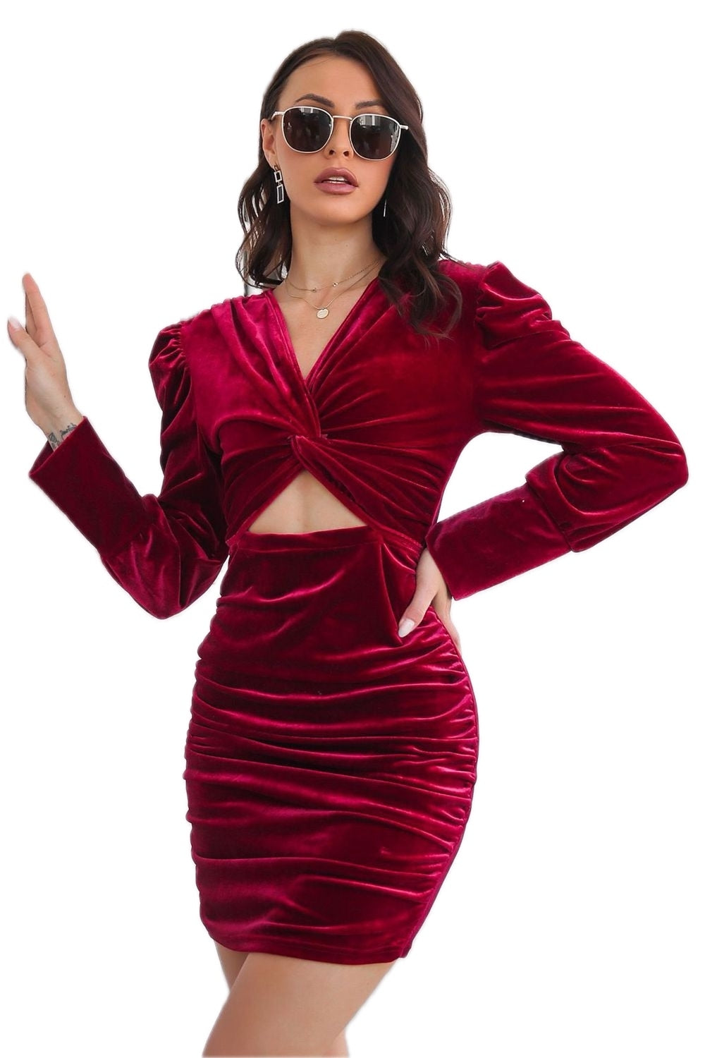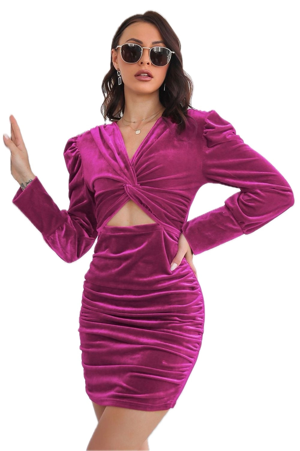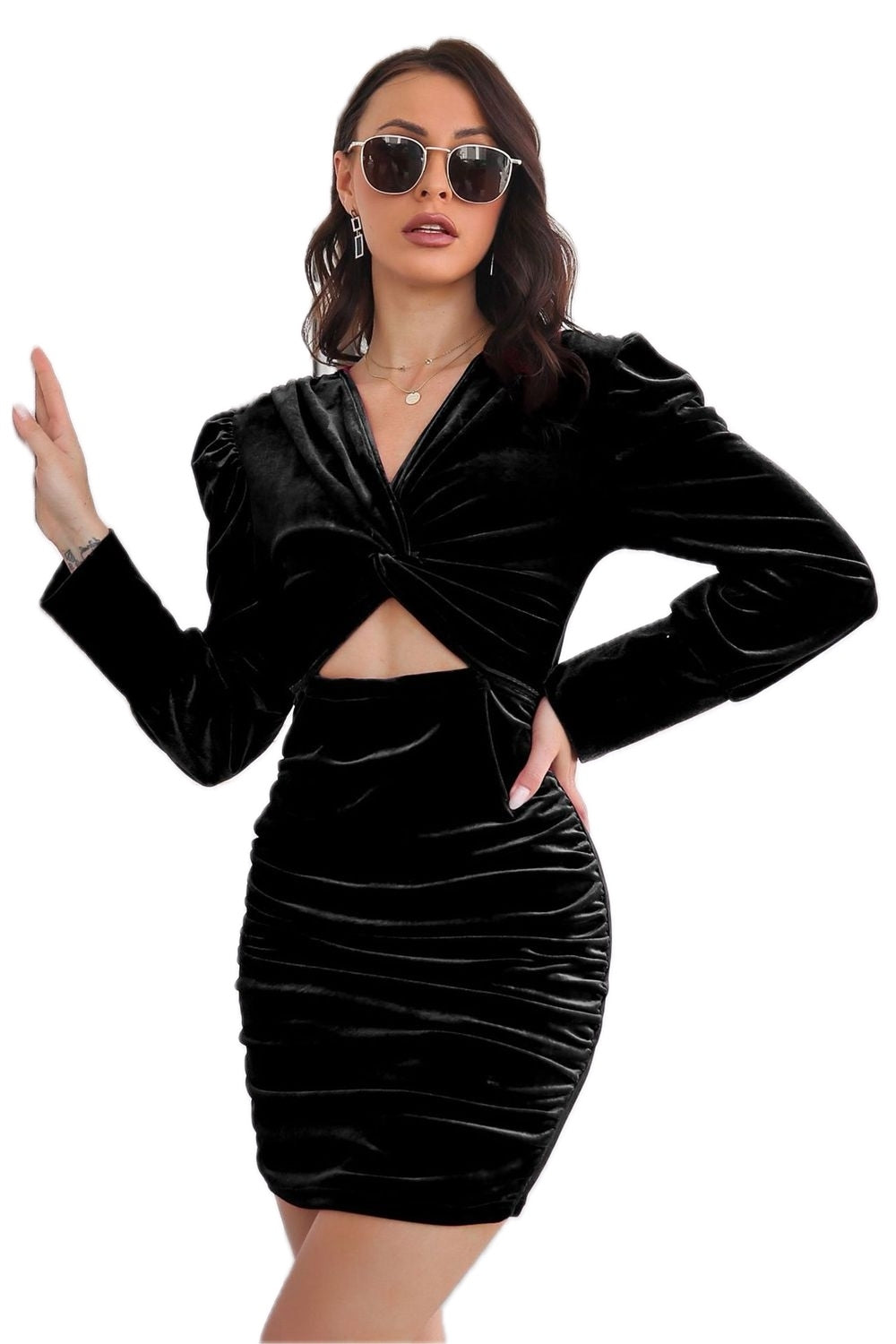 Women's Twist Front Cutout Long Sleeve Dress 100% Polyester V Neck Mini Length Pencil Hem Solid Style Classy Look