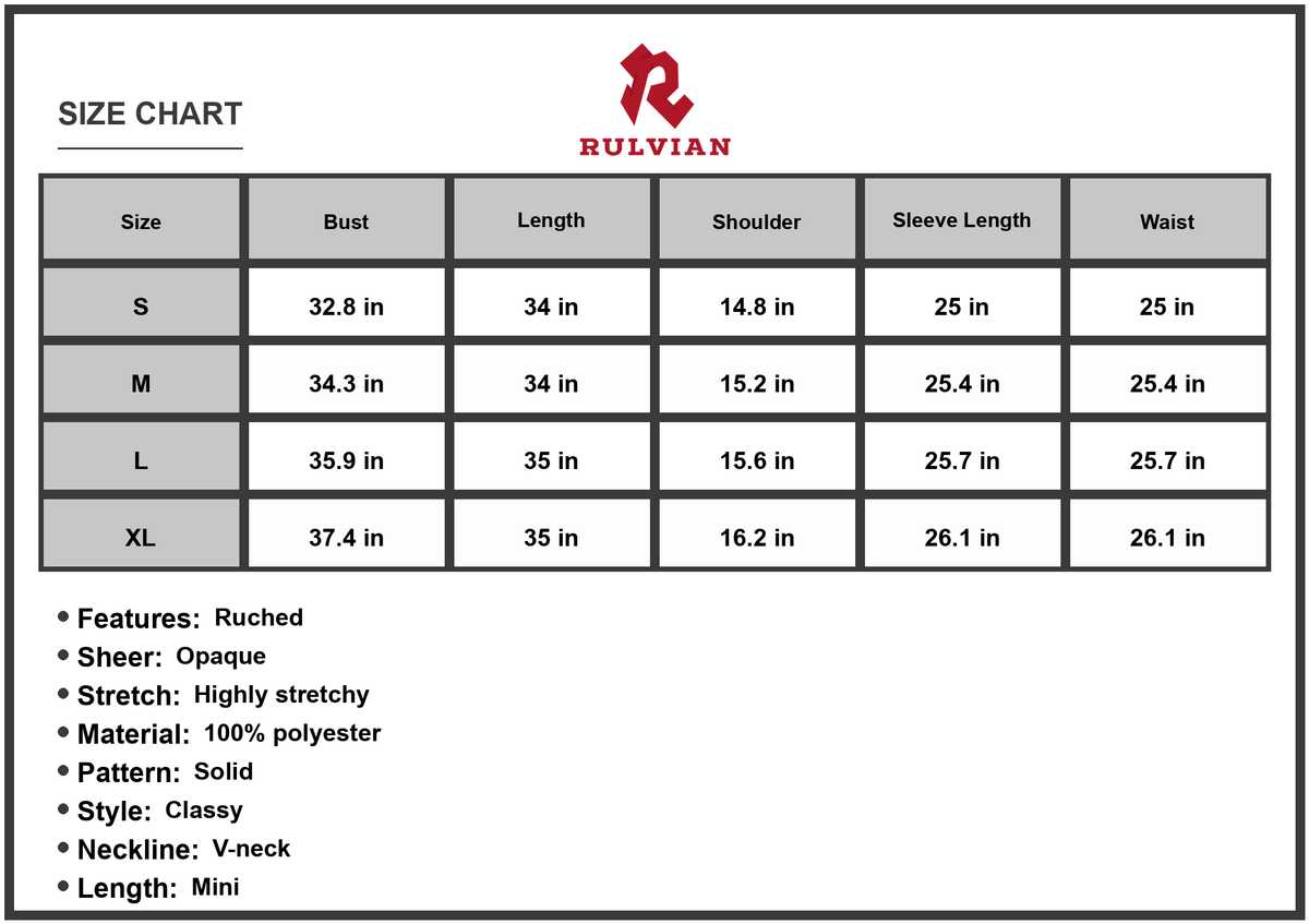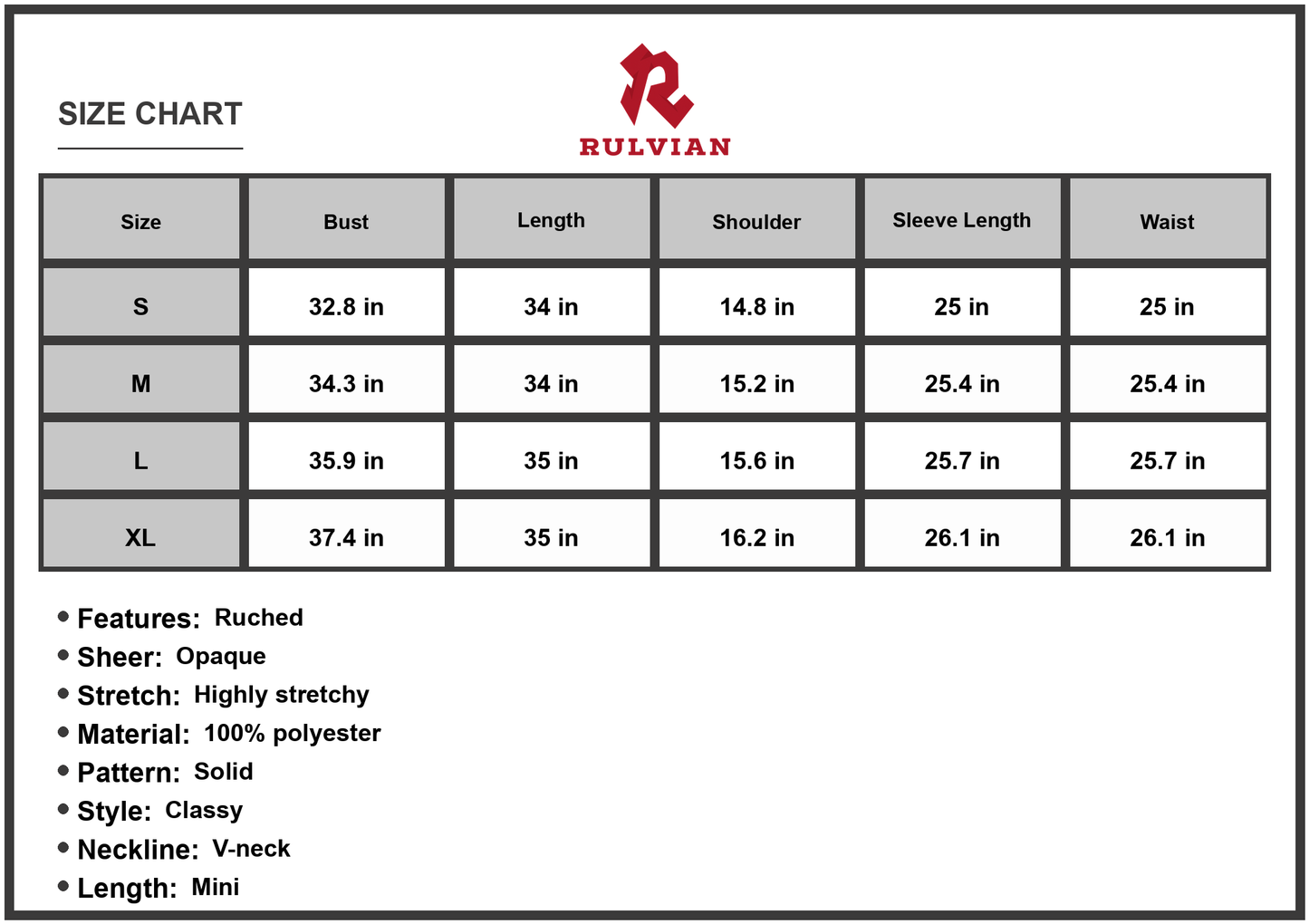 S: shoulder 14.8 in, bust 32.8 in, waist 25 in, length 34 in, sleeve length 25 in