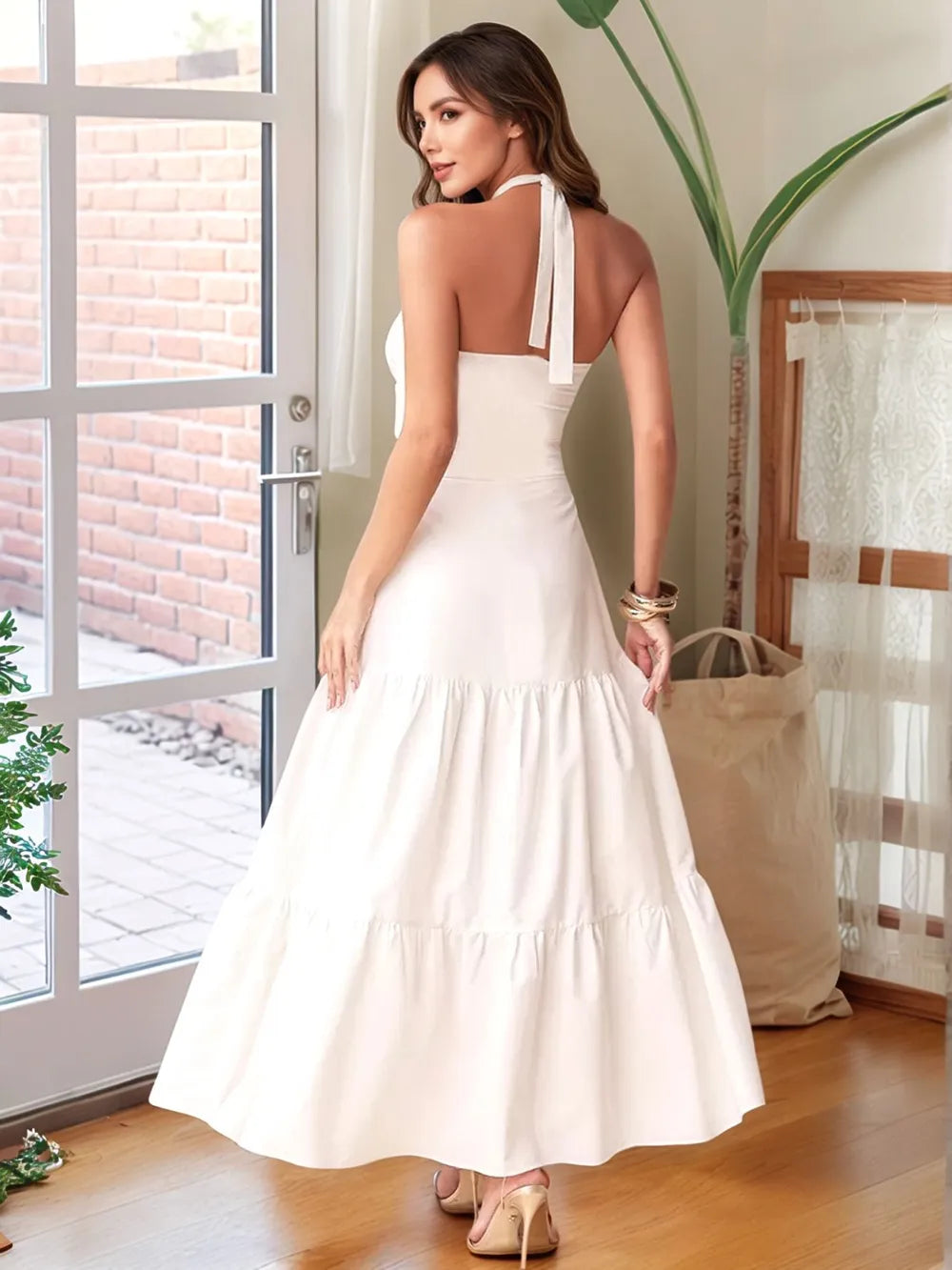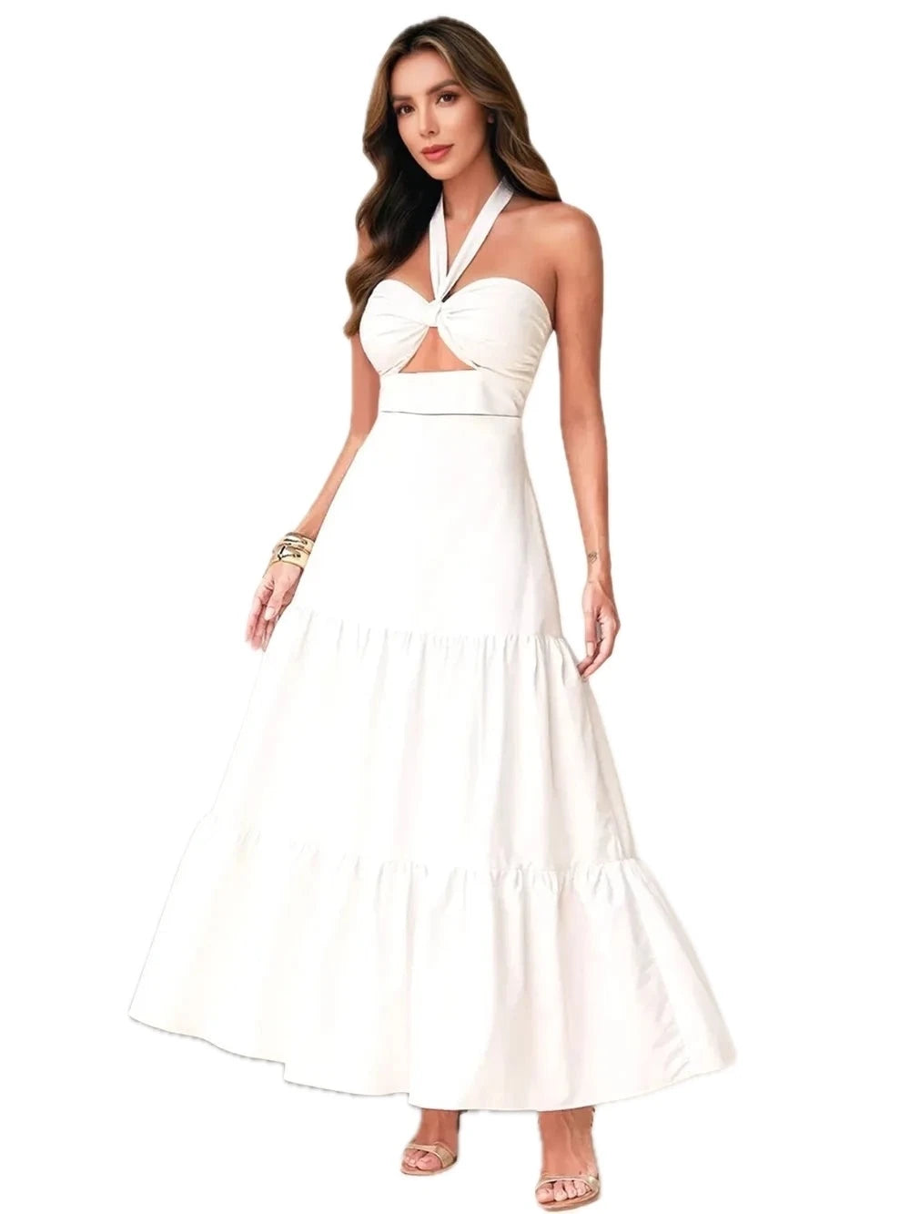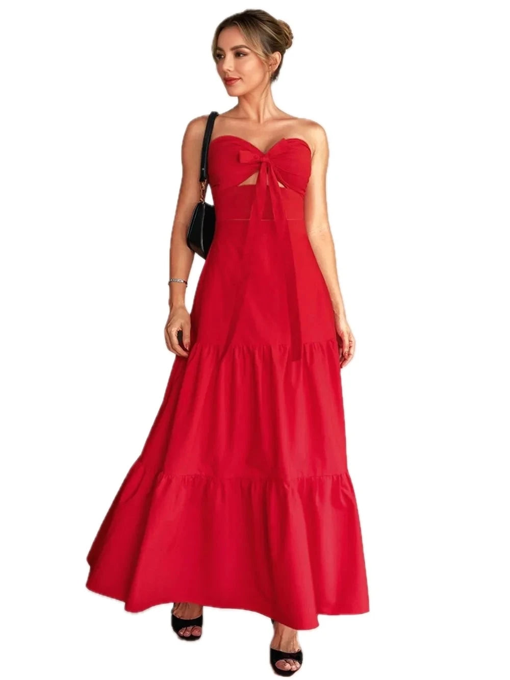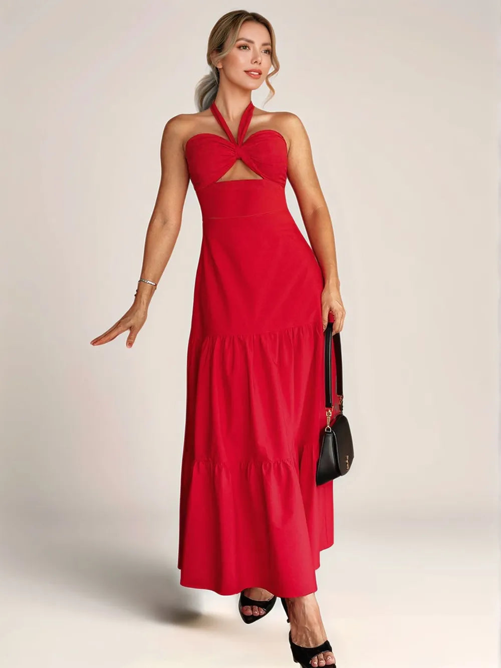 Women's Twist Front Cutout Tiered Maxi Dress Elegant Evening Wear Sheer Layer 95% polyester 5% spandex for occasions