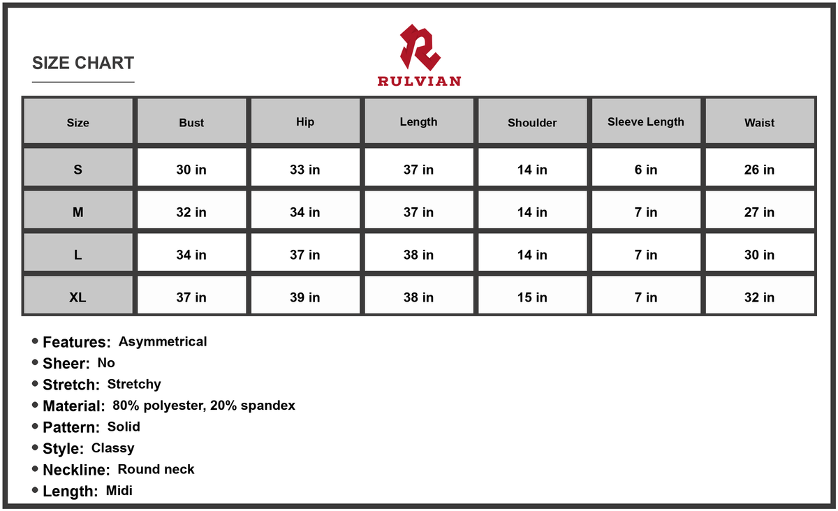 XL: shoulder 15 in, bust 37 in, waist 32 in, hip 39 in, sleeve length 7 in, length 38 in