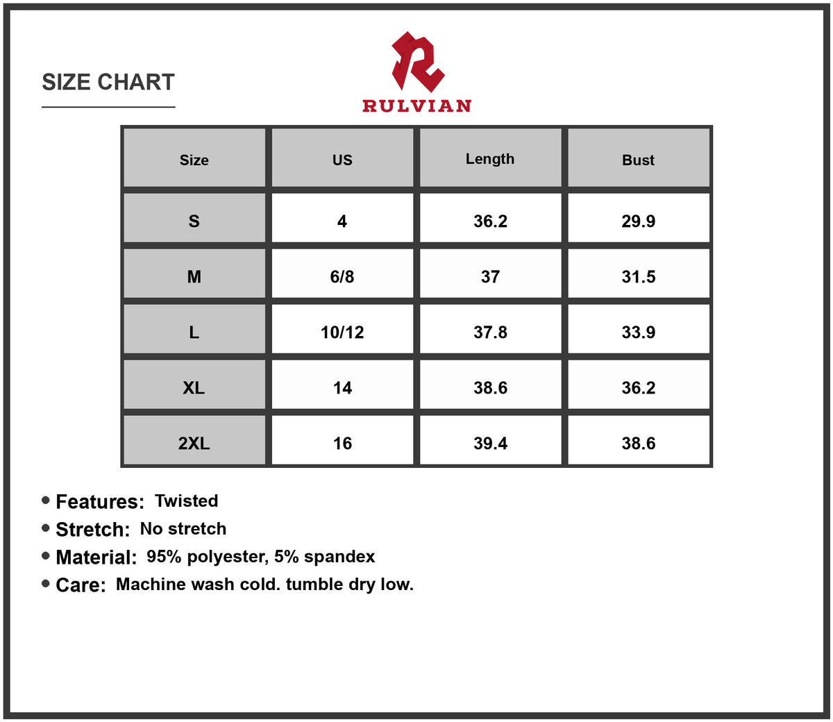 Size | US | Length | Bust |