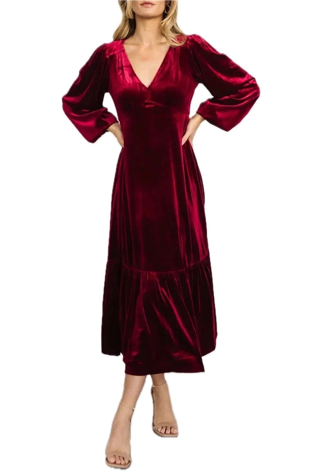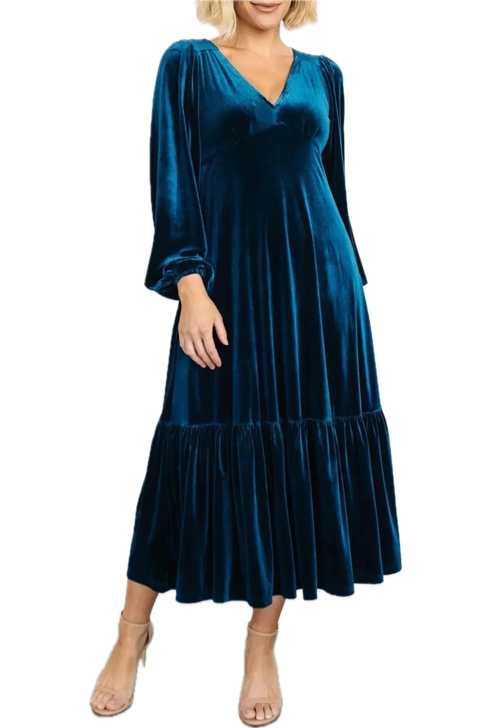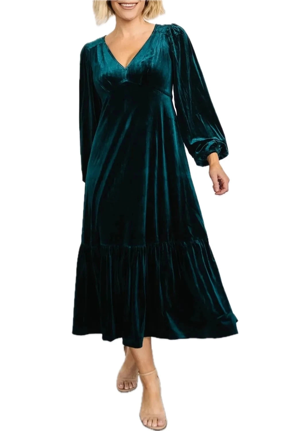 Women's V Neck Long Sleeve Velvet Midi Dress 95% Polyester 5% Elastane Ruched Sheer Overlay Opaque Stretchy Body