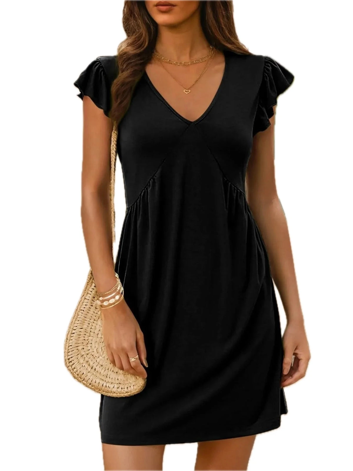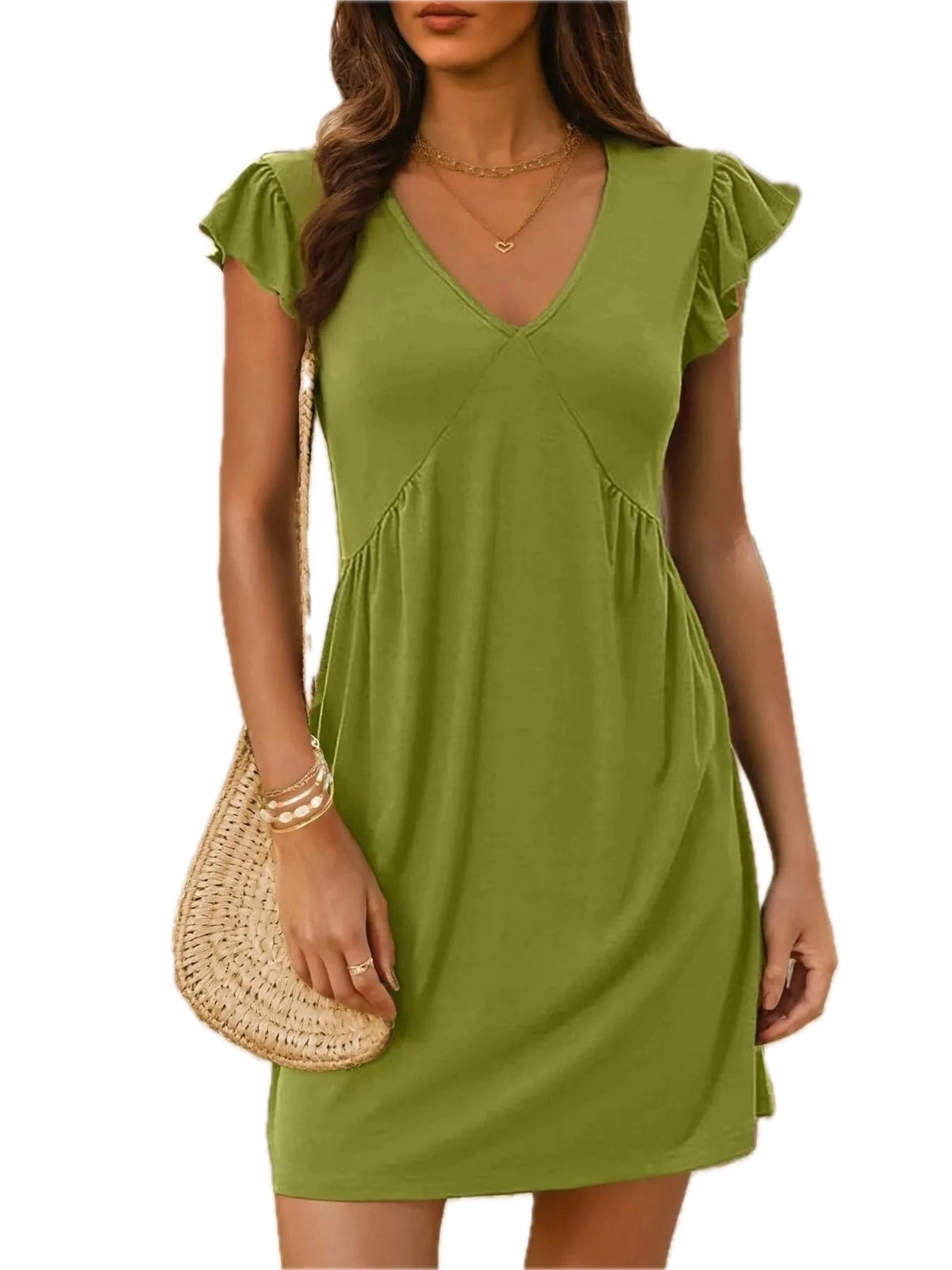 Women's V Neck Ruffle Sleeve Dress 100% Polyester Lightweight Flowy Everyday Wear Stylish Comfortable For Day And Night