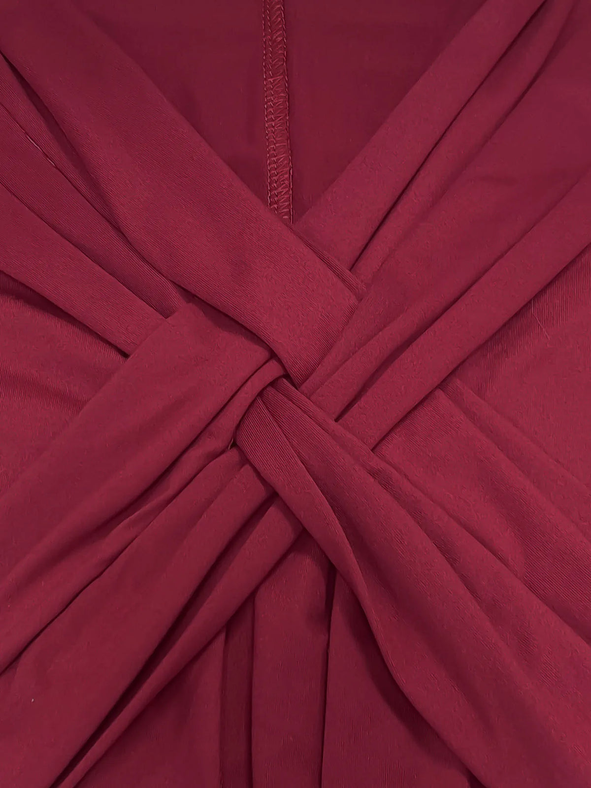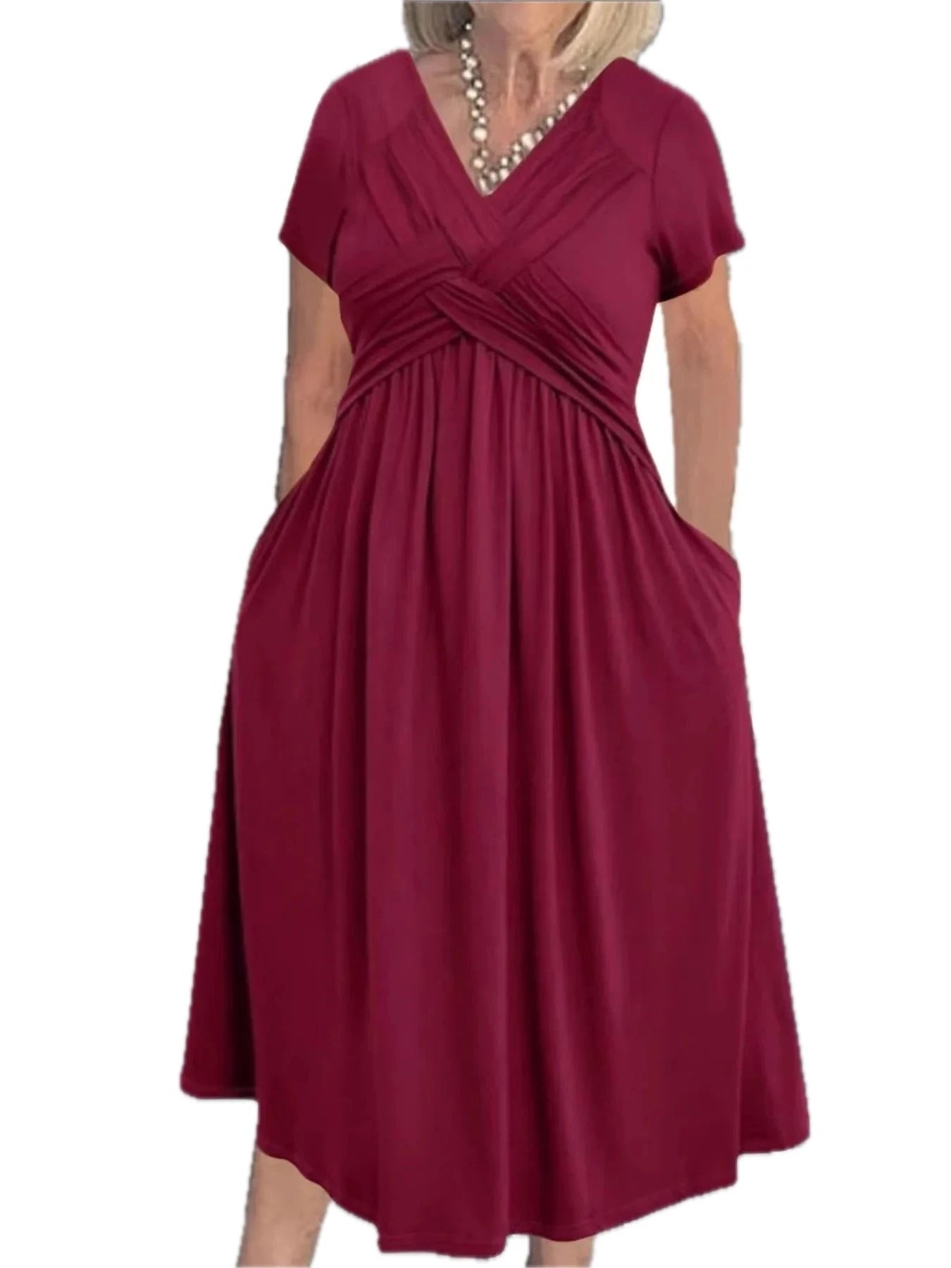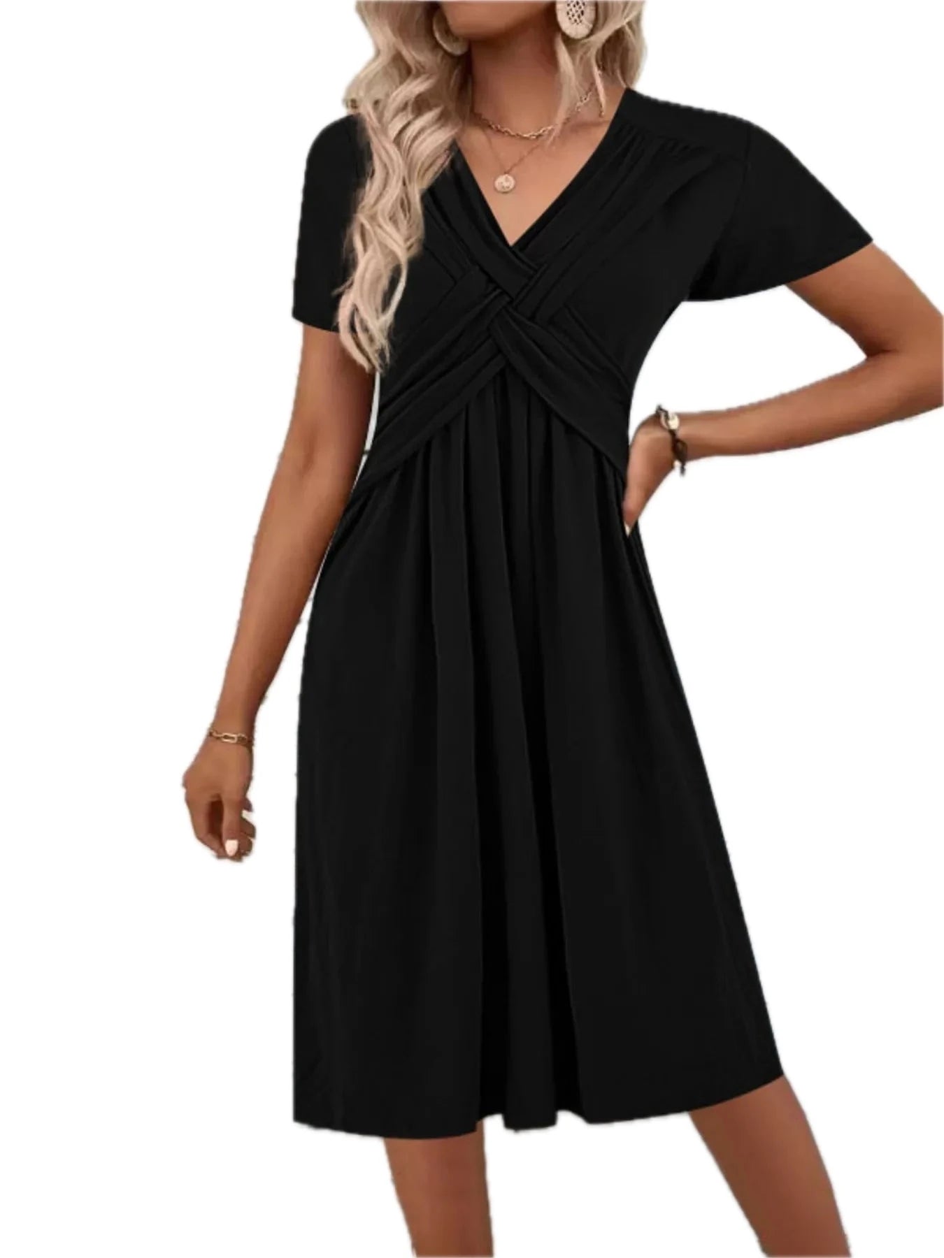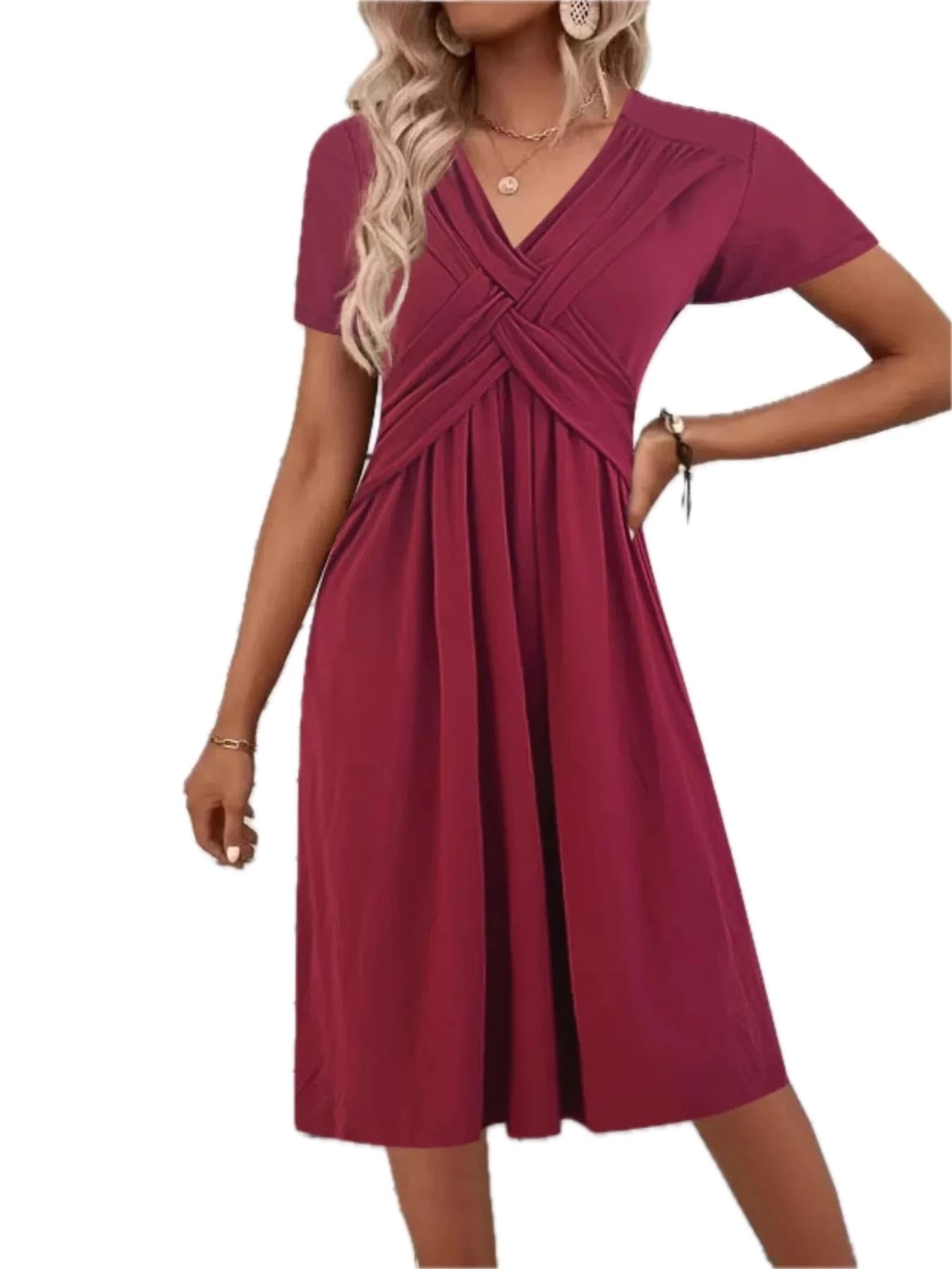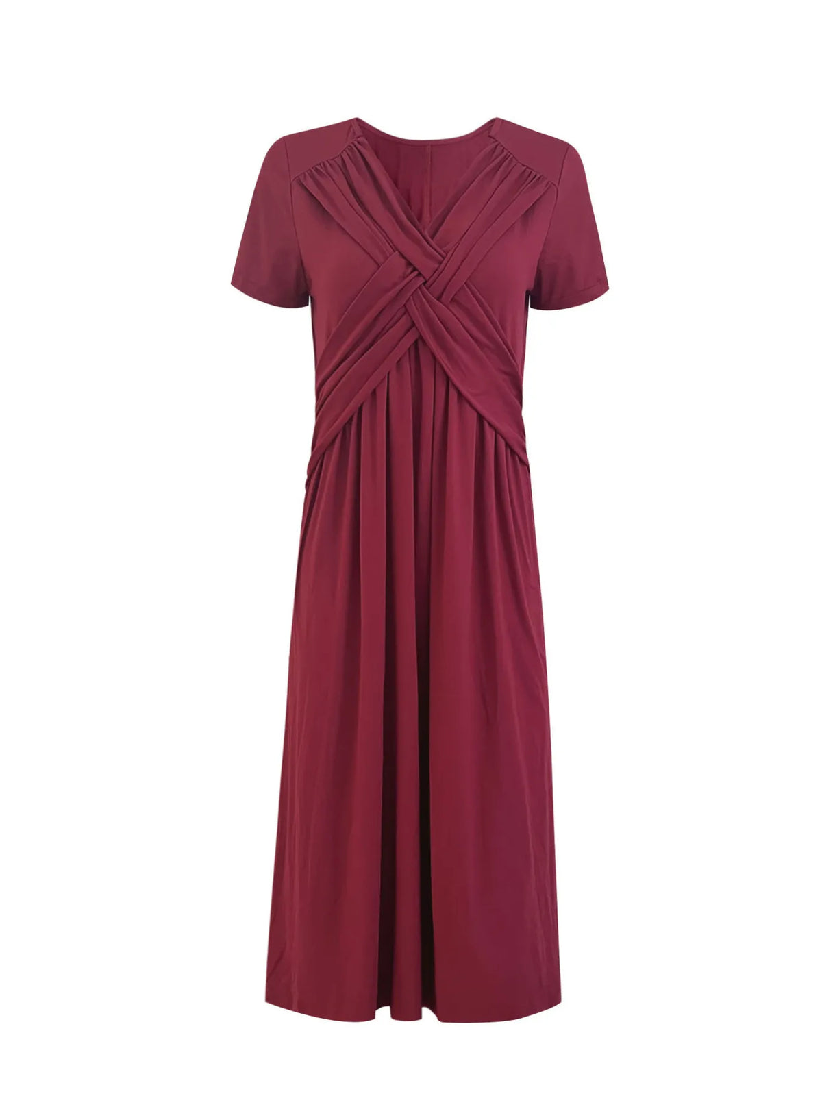 Women's V Neck Short Sleeve Midi Dress with Crisscross Stretch Silhouette 95% polyester 5% spandex versatile style