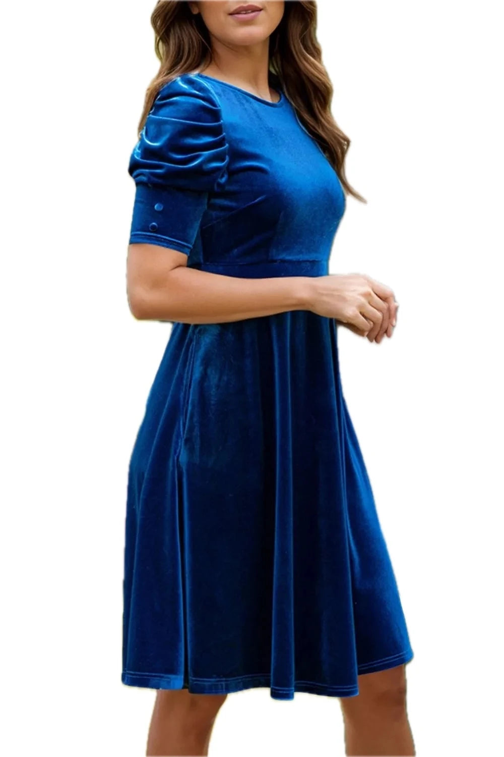 Women's Velvet Round Neck Puff Sleeve Dress 95% Polyester 5% Elastane Soft Stretchy Elegant Party Evening Gown
