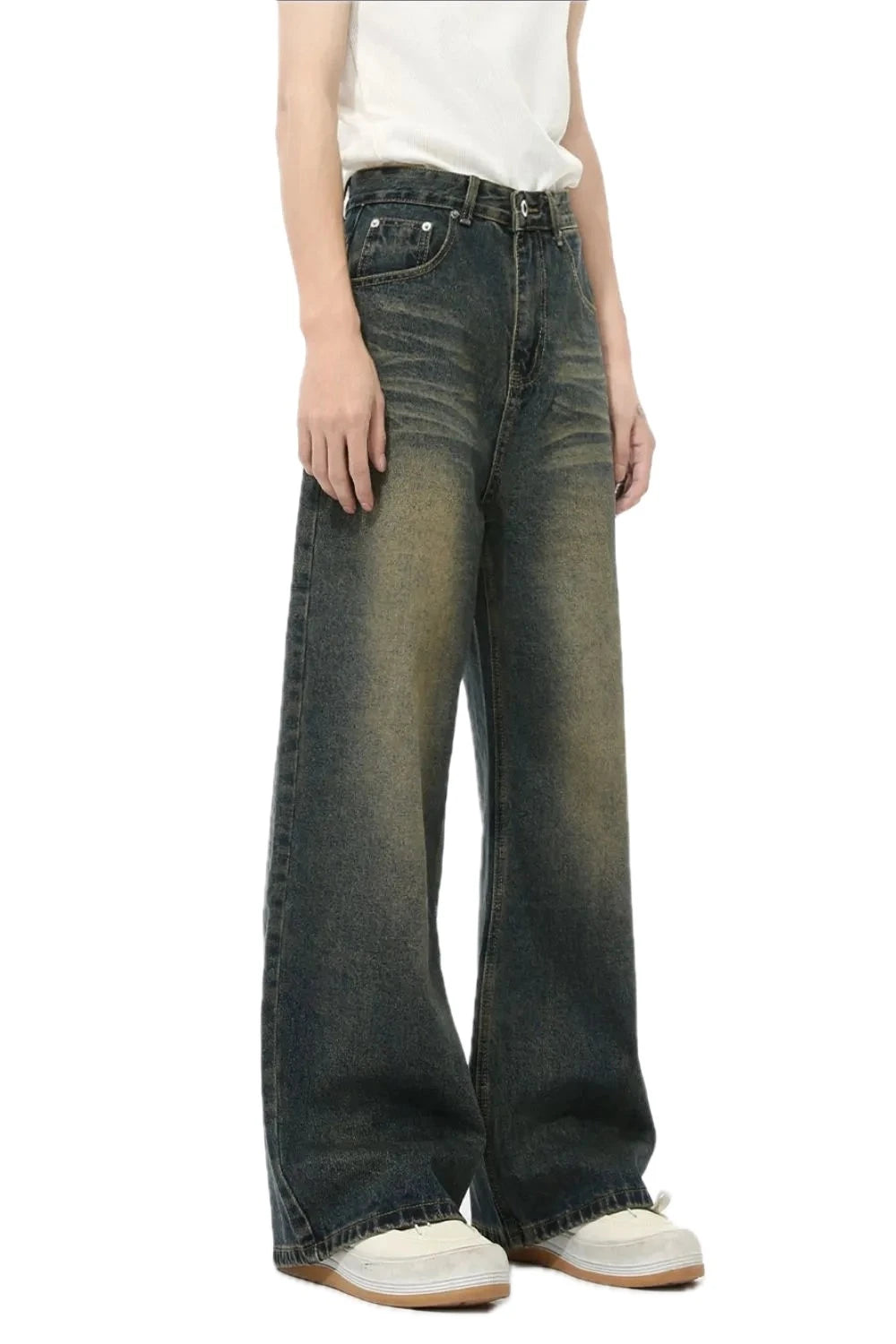 Womens Straight Leg Jeans Washed Cat Whisker Durable Denim Pants Casual Everyday Wear Classic Fit Essential Bottoms