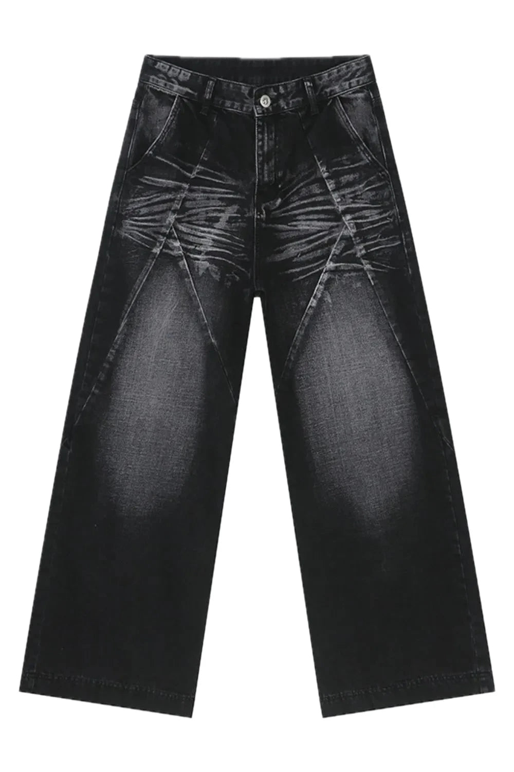 Washed Cat Whisker Straight Leg Jeans Durable Denim for Everyday Casual Wear Modern Classic Style Comfort Everyday