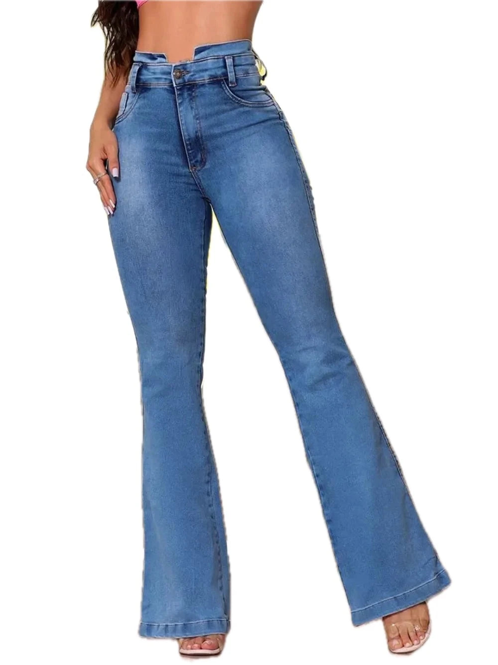 Women High Rise Flared Jeans with Stretch Slim Fit Buttoned Pockets Washed Bootcut Denim Pants for Everyday Wear Stylish