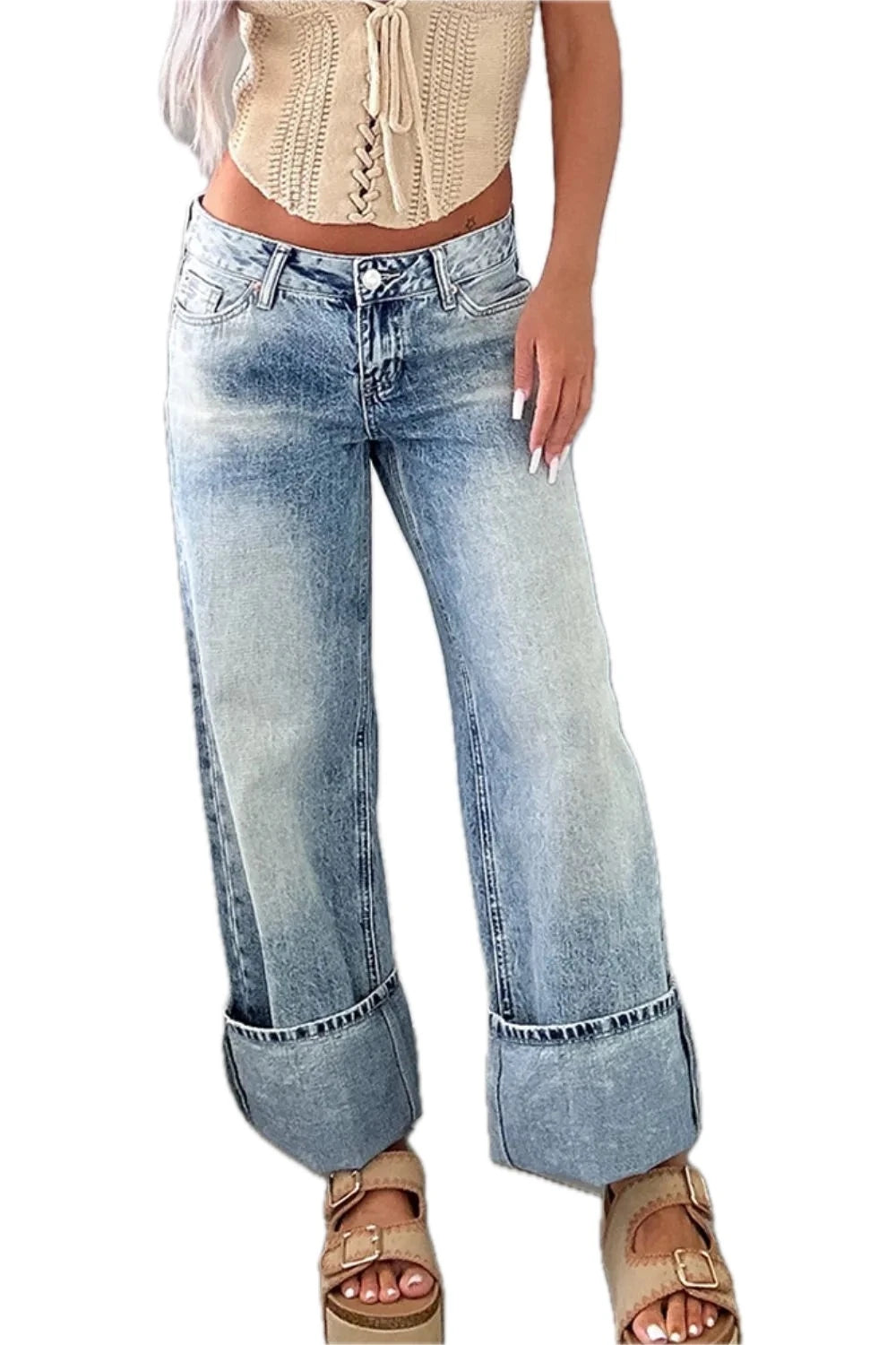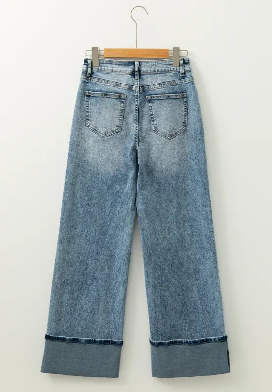Women Washed Wide Leg High Waist Jeans with Front and Back Pockets Non Stretch Denim Casual Everyday Relaxed Fit Pants