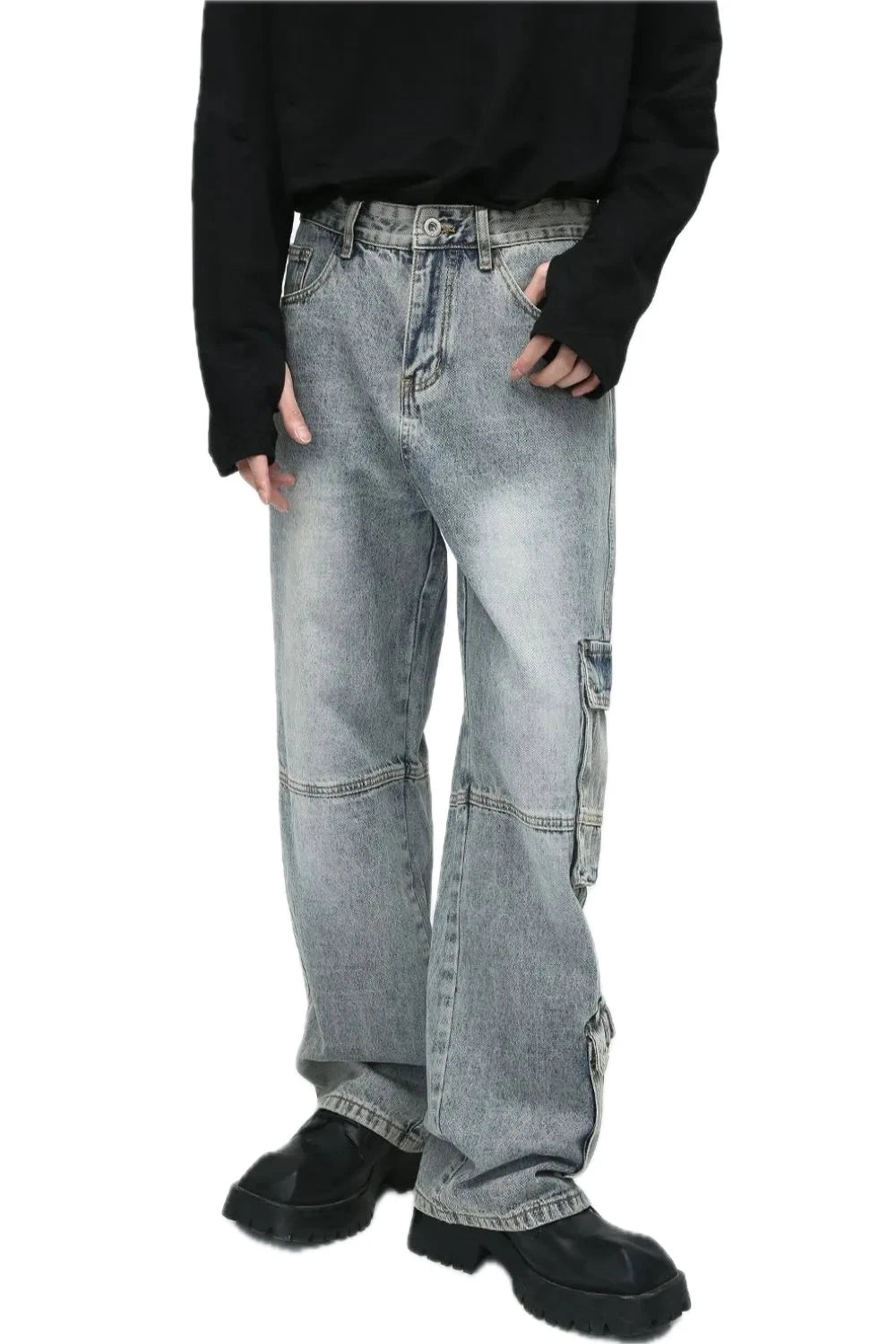 Women Wide Leg Cargo Jeans Loose Fit Denim Pants Durable Casual Everyday Wear For Women With Front And Back Pockets