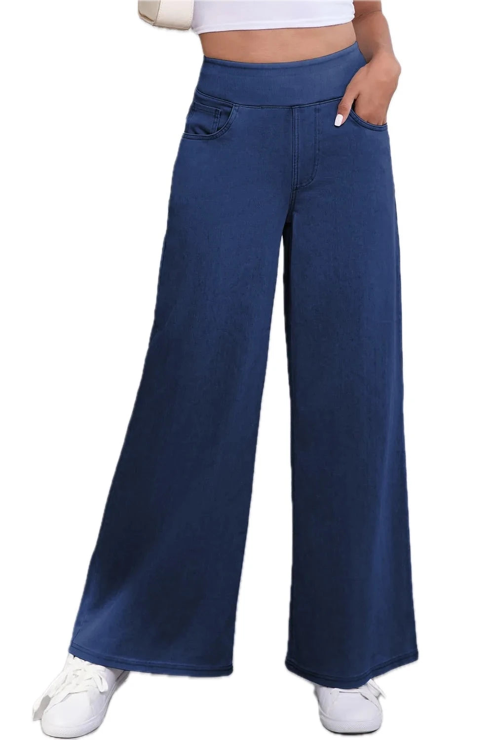 Womens Wide Leg Jeans with Pockets Stretchy High Waist Casual Denim Pants for Everyday Wear Loose Fit Comfort Daily