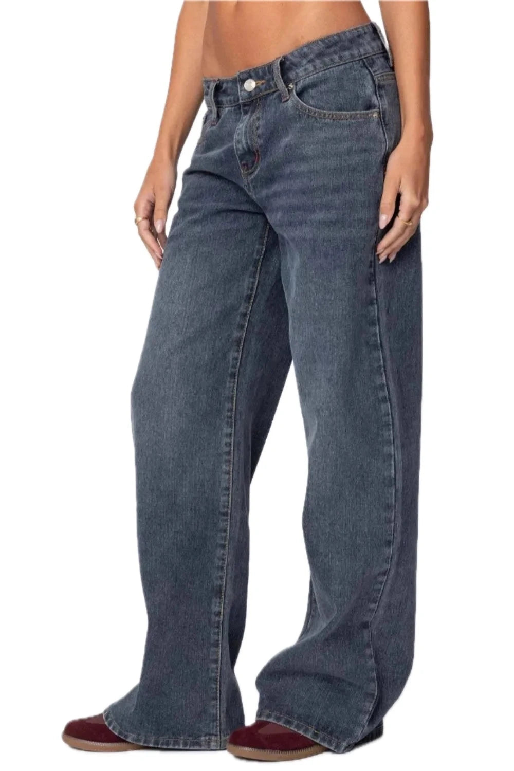 Womens Wide Leg Jeans with Pockets Buttoned High Waist Denim Pants Casual Everyday Wear Versatile Durable Classic Fit