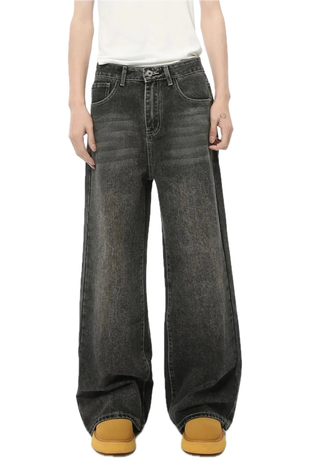 Mens Wide Leg Jeans with Pockets Durable Casual Denim Pants for Everyday Wear Relaxed Fit Versatile Trousers Daily Wear